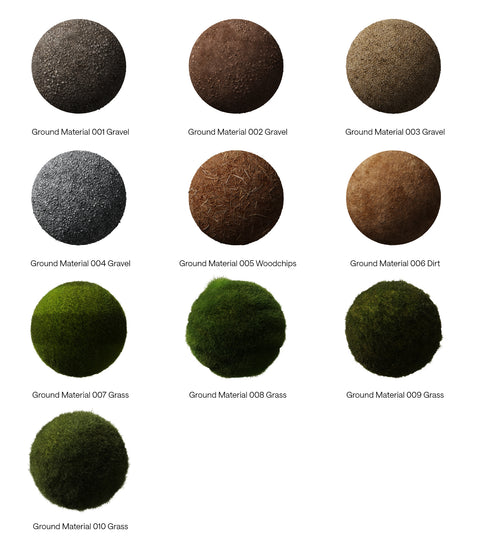 This package contains a KeyShot Material Package (.kmp) file for 10 gravel, dirt and grass materials, ready to drag and drop on to your scenes.