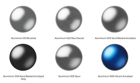 This package contains a KeyShot material file (.kmp) featuring 6 precision-crafted aluminium materials ready for use. From brushed aluminium, to anodized and galvansied, this collection covers all the fundamental aluminium finishes.