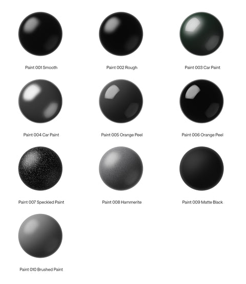 Elevate your rendering game with our specialised KeyShot Material Package (.kmp) filled with 10, fully procedural paint materials, focusing on subtle imperfections. The pack contains subtle varying orange peels, spray spots and matte black. But it's not all about the details; the pack also features dramatic options like metallic car paint.