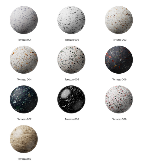 This package contains a KeyShot Material Package (.kmp) files for 10 terrazzo materials, ready to drag and drop on to your scenes. The materials vary from glossy black to colourful matte, are all made in 4K, and are set up for photo-realistic results and quick application.